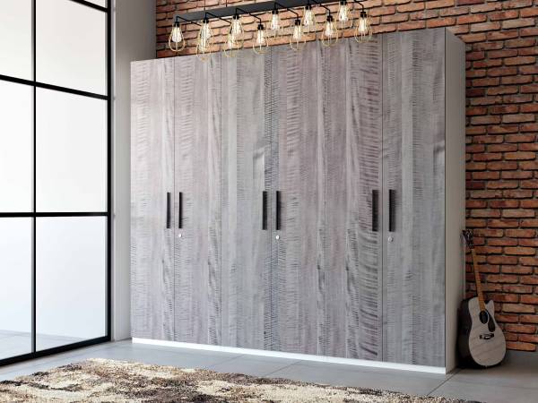 – The wardrobe’s light grey wood grain finish introduces a sense of warmth and natural elegance to your space.
